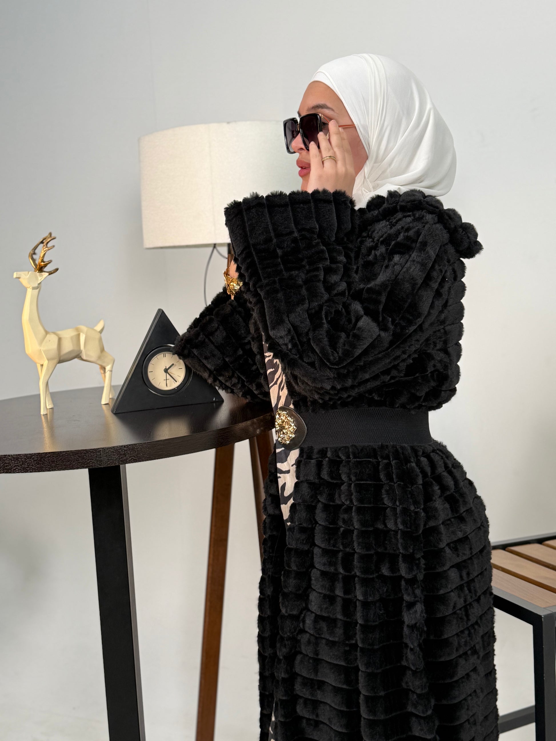 Manteau en fausse fourrure texturée, chaud et élégant.
